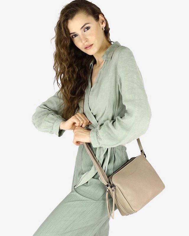 Torebka skórzana crossbody listonoszka dwie komory - MARCO MAZZINI beż cappuccino