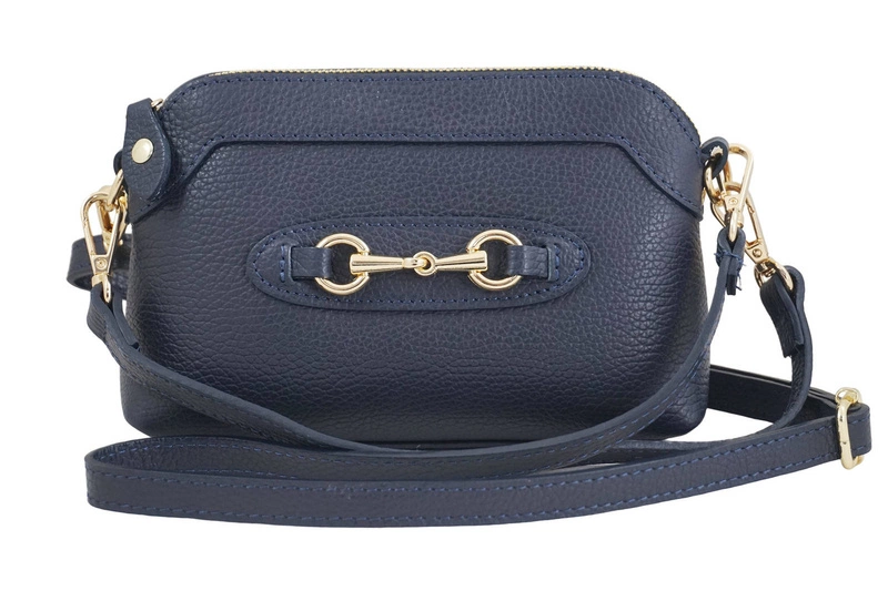 Mała torebka wizytowa skórzana w kolorze granatowym została wykonana ze skóry naturalnej licowej. Klasyczny fason urozmaicony złotymi ozdobami mocowanymi na doszytym elemencie skórzanym, z przodu torebki, wyróżnia ten model listonoszki, która podkreśli stylizacje zarówno codzienne swobodne, jak również na wyjątkowe okazje. Dostępna w najnowszej kolekcji, w szerokiej palecie kolorów, mała torebka wizytowa skórzana będzie idealna dla osób, którym zależy na niewielkich gabarytowo, aczkolwiek pojemnych i jednocześnie stylowych torebkach ze skóry naturalnej. Dzięki klasycznemu i stonowanemu wzornictwu dopasujesz torebkę zarówno do eleganckich sukienek lub spodni oraz do dżinsów i skórzanych sandałków. Zapoznaj się z najnowszą ofertą torebek skórzanych dostępnych w naszym sklepie - listonoszek, klasycznych lub wygodnych plecaków oraz portfeli. Oferujemy duży wybór produktów galanterii skórzanej Dla Niej i Dla Niego.
