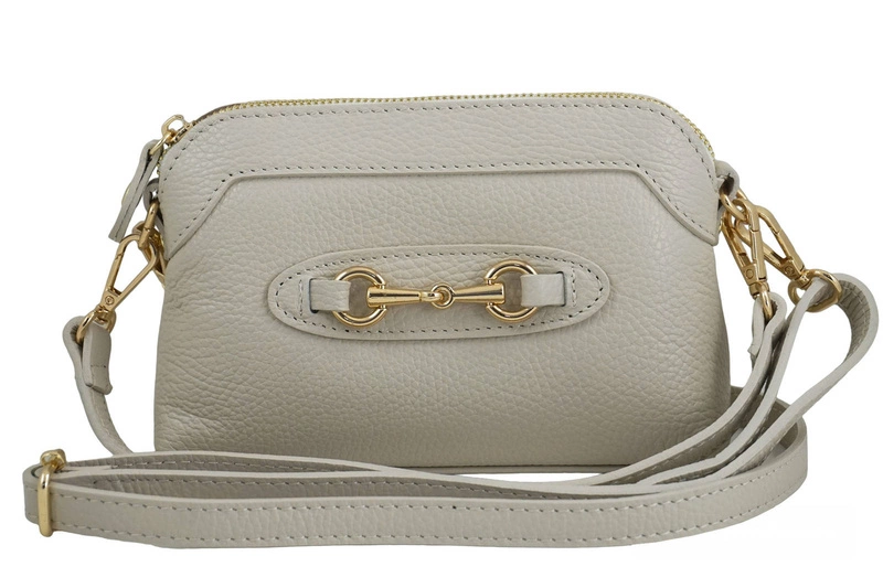 Mała torebka wizytowa skórzana w kolorze beżowym jasnym została wykonana ze skóry naturalnej licowej. Klasyczny fason urozmaicony złotymi ozdobami mocowanymi na doszytym elemencie skórzanym, z przodu torebki, wyróżnia ten model listonoszki, która podkreśli stylizacje zarówno codzienne swobodne, jak również na wyjątkowe okazje. Dostępna w najnowszej kolekcji, w szerokiej palecie kolorów, mała torebka wizytowa skórzana będzie idealna dla osób, którym zależy na niewielkich gabarytowo, aczkolwiek pojemnych i jednocześnie stylowych torebkach ze skóry naturalnej. Dzięki klasycznemu i stonowanemu wzornictwu dopasujesz torebkę zarówno do eleganckich sukienek lub spodni oraz do dżinsów i skórzanych sandałków. Zapoznaj się z najnowszą ofertą torebek skórzanych dostępnych w naszym sklepie - listonoszek, klasycznych lub wygodnych plecaków oraz portfeli. Oferujemy duży wybór produktów galanterii skórzanej Dla Niej i Dla Niego.