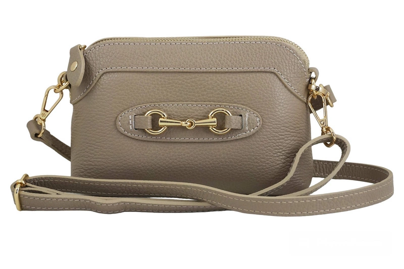 Mała torebka wizytowa skórzana w kolorze beżowym została wykonana ze skóry naturalnej licowej. Klasyczny fason urozmaicony złotymi ozdobami mocowanymi na doszytym elemencie skórzanym, z przodu torebki, wyróżnia ten model listonoszki, która podkreśli stylizacje zarówno codzienne swobodne, jak również na wyjątkowe okazje. Dostępna w najnowszej kolekcji, w szerokiej palecie kolorów, mała torebka wizytowa skórzana będzie idealna dla osób, którym zależy na niewielkich gabarytowo, aczkolwiek pojemnych i jednocześnie stylowych torebkach ze skóry naturalnej. Dzięki klasycznemu i stonowanemu wzornictwu dopasujesz torebkę zarówno do eleganckich sukienek lub spodni oraz do dżinsów i skórzanych sandałków. Zapoznaj się z najnowszą ofertą torebek skórzanych dostępnych w naszym sklepie - listonoszek, klasycznych lub wygodnych plecaków oraz portfeli. Oferujemy duży wybór produktów galanterii skórzanej Dla Niej i Dla Niego.