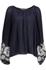 - bluzka z długim rękawem, szeroki dekolt, 3 guziki, szerokie rękawy z elastycznymi ściągaczami, haft, logo