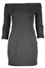 • krótka sukienka, dekolt odsłaniający ramiona, rękaw 3/4, kontrastowe detale, logo