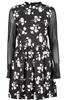 - krótka sukienka z długimi rękawami z przezroczystości, zamek z tyłu, logo