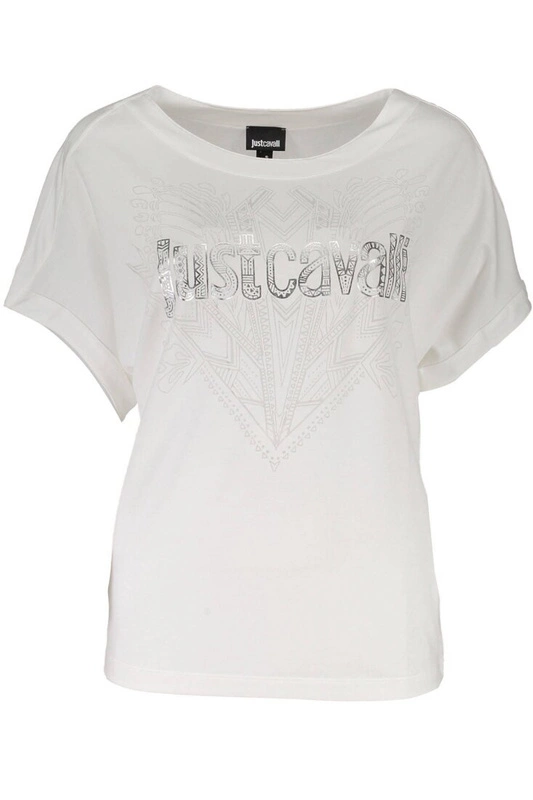 T-SHIRT Z KRÓTKIM RĘKAWEM JUST CAVALLI DAMSKI BIAŁY