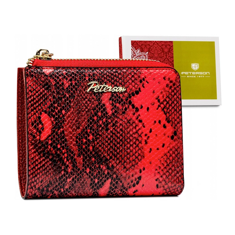 Mały portfel damski z motywem skóry węża zamykany na zamek — Peterson