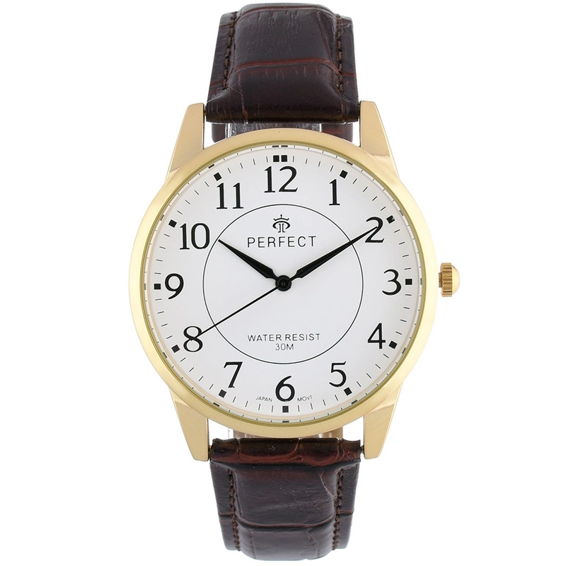 Zegarek męski kwarcowy brązowo-złoty klasyczny skórzany pasek C426