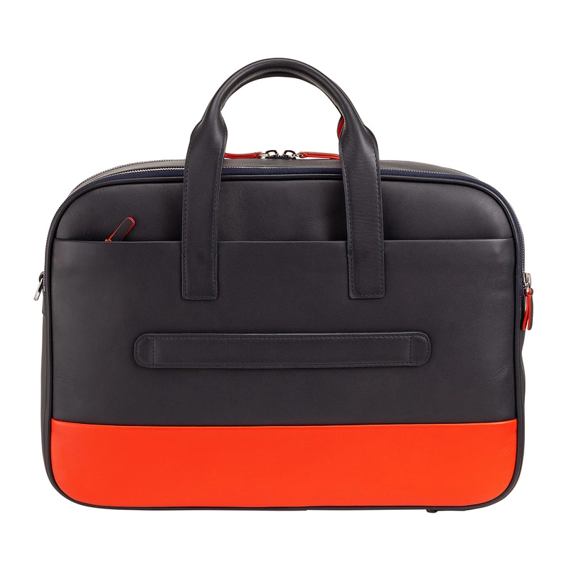 - Ta skórzana aktówka jest niezbędnym elementem w życiu każdego biznesmena i bizneswoman. Wyposażona w podwójną komorę zapinaną na zamek błyskawiczny, może pomieścić urządzenia do 16-calowego MacBooka. Każda komora posiada kolorowe kieszenie.
