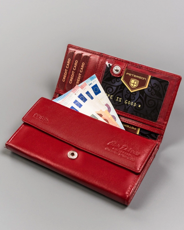 Wielokolorowy, skórzany portfel damski na zatrzask — Peterson