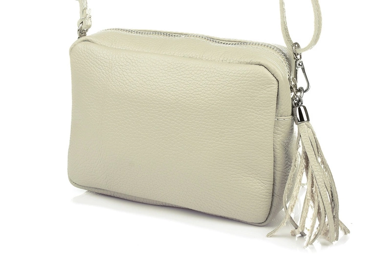 Opinie o Torebka damska listonoszka skórzana z frędzlem modna kremowa C74