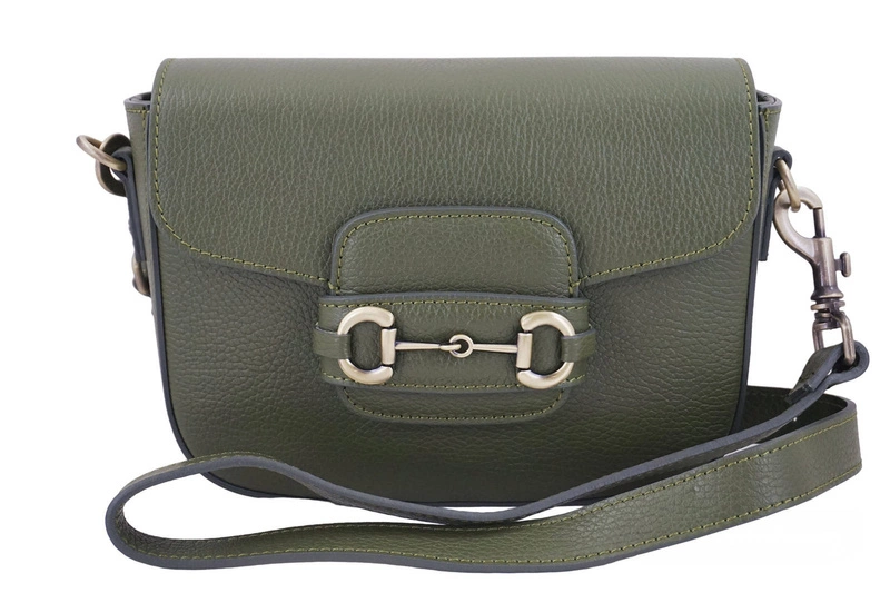 Torebka skórzana na szerokim pasku - Zielona