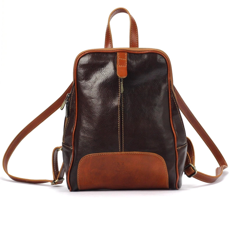 Florence Miejski Damski plecak skóra naturalna z kieszeniami na suwak