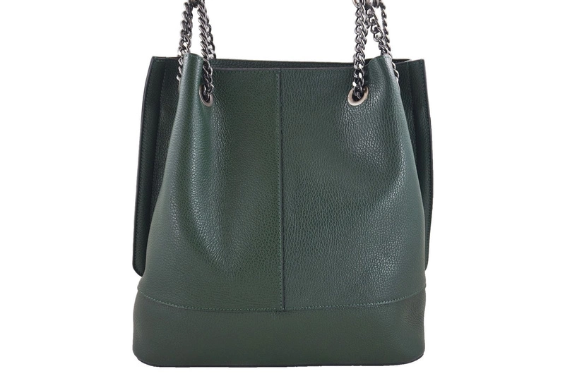 Modna torebka skórzana damska została wyprodukowana we Włoszech, wykonana ze skóry naturalnej licowej. Propozycja sklepu internetowego Barberini's w kategorii Torebki Klasyczne - modna torebka skórzana damska na wygodnej długości uchwytach wykonanych z połączenia skóry naturalnej oraz metalowych łańcuszków. Ofertę kierujemy do kobiet dbających o eleganckie stylizacje do pracy lub na spotkanie, poszukujących klasycznych dodatków codziennej garderoby.