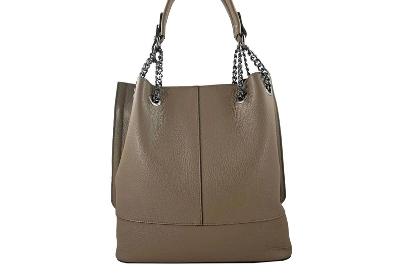 Modna torebka skórzana damska została wyprodukowana we Włoszech, wykonana ze skóry naturalnej licowej. Propozycja sklepu internetowego Barberini's w kategorii Torebki Klasyczne - modna torebka skórzana damska na wygodnej długości uchwytach wykonanych z połączenia skóry naturalnej oraz metalowych łańcuszków. Ofertę kierujemy do kobiet dbających o eleganckie stylizacje do pracy lub na spotkanie, poszukujących klasycznych dodatków codziennej garderoby.