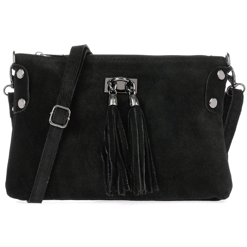 Torebka damska mała wizytowa zamszowa czarna miękka pasek regulowany X52