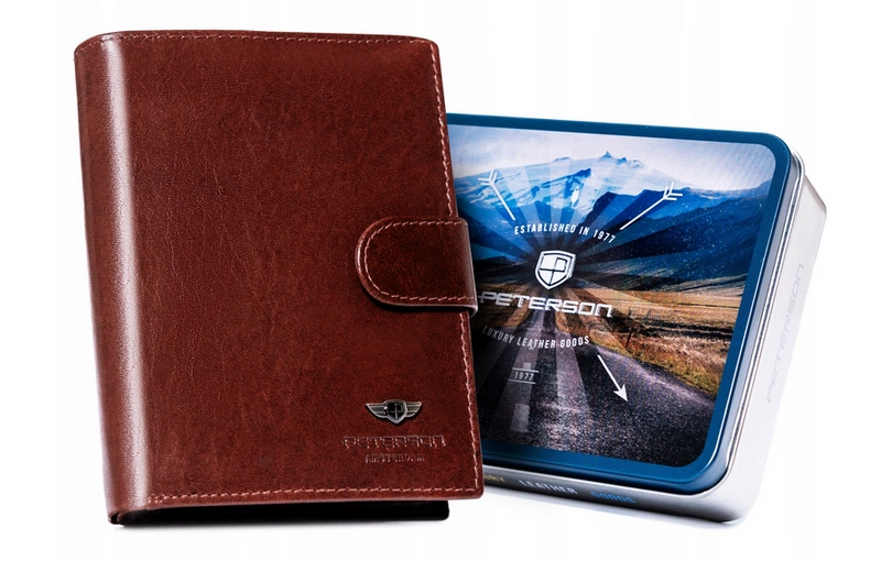 Klasyczny, skórzany portfel męski na zatrzask — Peterson