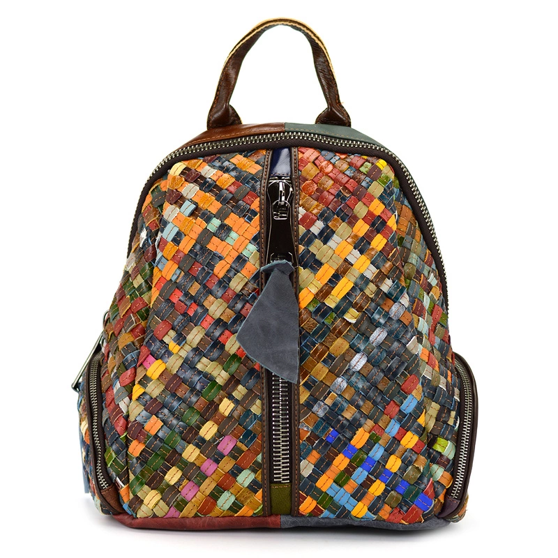 Opinie o Kolorowy damski plecak wzór mozaiki skórzany