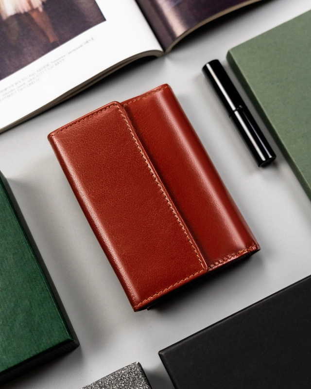 - Ponadczasowy fason | Portfel o klasycznej stylistyce. Model w orientacji pionowej, dwusekcyjny, zapinany bezpiecznym i trwałym zatrzaskiem;