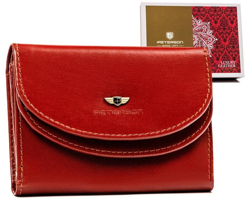 Klasyczny, skórzany portfel damski na zatrzask — Peterson
