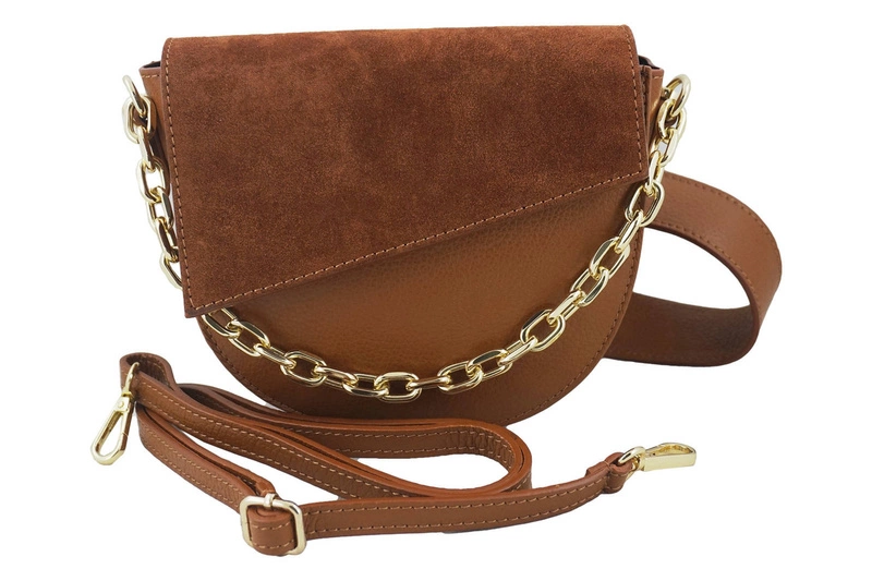 Torebka skórzana z ozdobnym łańcuszkiem - Brązowa jasna