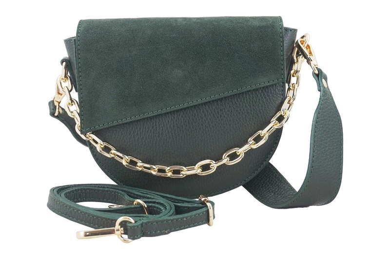 Torebka skórzana z ozdobnym łańcuszkiem - Zielona ciemna