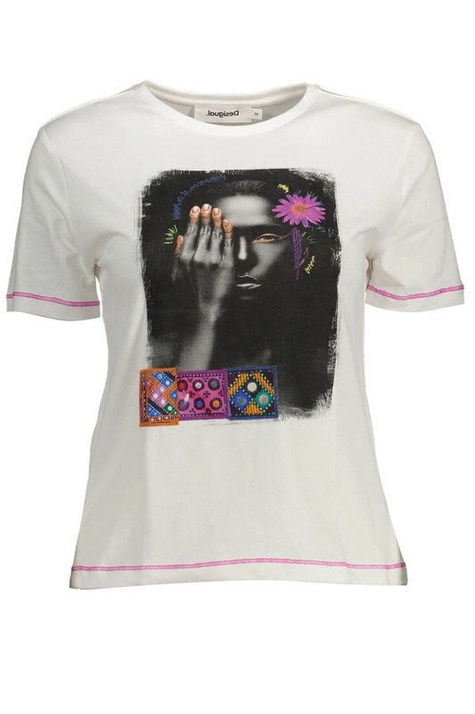 DESIGUAL T-SHIRT Z KRÓTKIM RĘKAWEM DAMSKI BIAŁY
