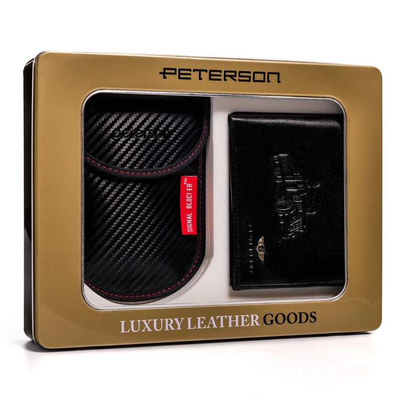 Zestaw prezentowy: skórzany portfel męski i etui — Peterson