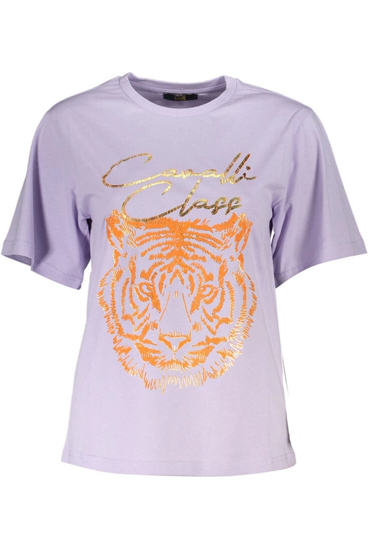CAVALLI CLASS FIOLETOWY T-SHIRT DAMSKI Z KRÓTKIM RĘKAWEM