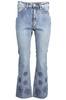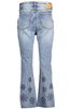 To, co wyróżnia te spodnie, to piękne haftowane kwiaty na nogawkach, które nadają im wyjątkowego, artystycznego charakteru. Hafty wprowadzają element kobiecego i subtelnego wzornictwa, który przełamuje klasyczny wygląd jeansów. Dzięki temu, spodnie nabierają modowego sznytu i stają się idealnym wyborem na casualowe, ale i bardziej eleganckie stylizacje.