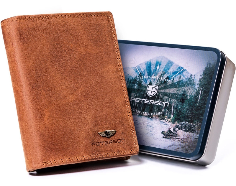 Pionowy, skórzany portfel męski z wewnętrzną kieszonką — Peterson