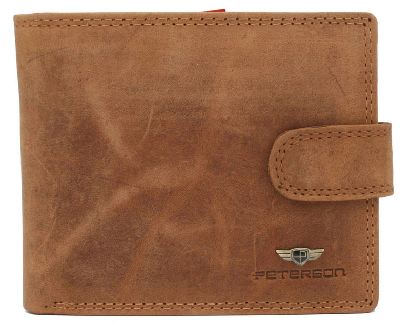 Poziomy portfel męski ze skóry naturalnej, system RFID Protect — Peterson