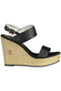 - sandał, klamra na kostce, kontrastowa podeszwa, koturn 11 cm, logo