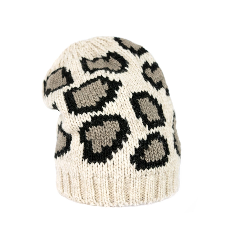 Czapka ozdobiona jest grubym splotem i wywijanym ściągaczem.