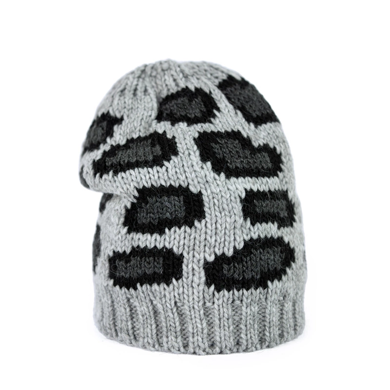 Czapka ozdobiona jest grubym splotem i wywijanym ściągaczem.