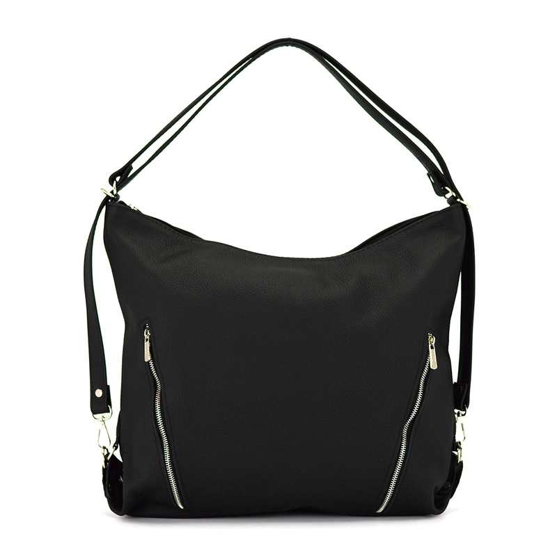 - Wygodny i niezwykle szykowny torebko-plecak. Na zewnątrz dwie kieszonki w tym jedna z elegancką srebrną klamrą, która dopełnia charakterystyczny styl tego modelu. Wewnątrz pojemna komora. Dodatkowo wygodny pasek, aby nosić też ten model jako torebkę.