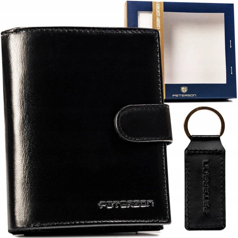 Zestaw prezentowy: skórzany portfel męski i brelok — Peterson