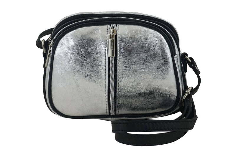 Mała torebka trzykomorowa została wykonana z naturalnej skóry licowej metalizowanej. Niewielka listonoszka skórzana z oddzielnymi trzema zasuwanym komorami, dzięki którym w torebce wszystko będzie na właściwym miejscu. Telefon, klucze oraz portfel, a także drobne kosmetyki - wszystko to możesz pomieścić w osobnych kieszonkach. Mała torebka trzykomorowa metalizowana na regulowanym pasku podkreśli modne stylizacje. Zapoznaj się z ofertą torebek skórzanych w kategorii LISTONOSZKI. Oferujemy duży wybór praktycznych listonoszek w szerokiej palecie kolorów, z delikatnymi ozdobami, z najnowszej kolekcji galanterii skórzanej.