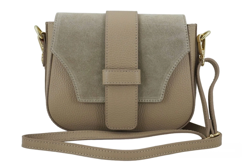 Torebka listonoszka z zamszową klapą w kolorze beżowym jest wykonana ze skóry naturalnej licowej w połączeniu ze skórą naturalną zamszową. Idealna propozycja wśród torebek na każdy dzień - klasyczna torebka urozmaicona ozdobnie wyciętą klapką, z długim regulowanym paskiem umożliwia noszenie torebki na ramieniu lub wygodnie przewieszonej przez ramię. W naszym asortymencie czekają na Ciebie skórzane torebki typu “listonoszka”, które dopasujesz zarówno do okazji, jak i Twojego stylu. Oferowane w najnowszej kolekcji torebki zaprojektowano tak, aby mieściły portfel, telefon, klucze oraz drobne kosmetyki. Torebka listonoszka z zamszową klapą to propozycja dla Pań ceniących gustowne dodatki codziennej garderoby, zwracających uwagę na jakość i estetykę wykonania produktu ze skóry naturalnej. Zachęcamy do zapoznania się ze szczegółową ofertą klasycznych torebek damskich skórzanych. Oferujemy również duży wybór portfeli ze skóry lakierowanej lub z kolorowym wnętrzem, zapakowanych w ozdobne, dopasowane pudełko.