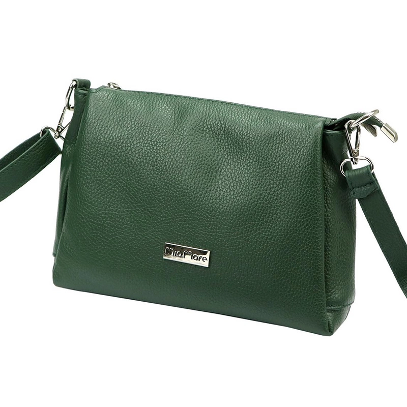 - Trzykomorowa w prostokątnym kształcie; damska listonoszka od marki MiaMore. Wykonana ze skóry naturalnej, wykończona srebrnym okuciem. W zestawie posiada dopinany, regulowany pasek. Łącznie dwie kieszenie na kobiece drobiazgi.