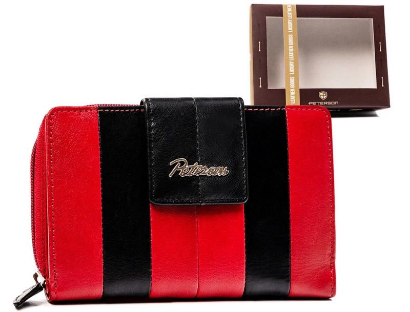 - Oryginalny design | Portfel o ponadczasowej stylistyce w ciekawym kolorze. Model w orientacji poziomej zapinany na trwały i solidny zatrzask. Faktura została ozdobiona pionowymi pasami;