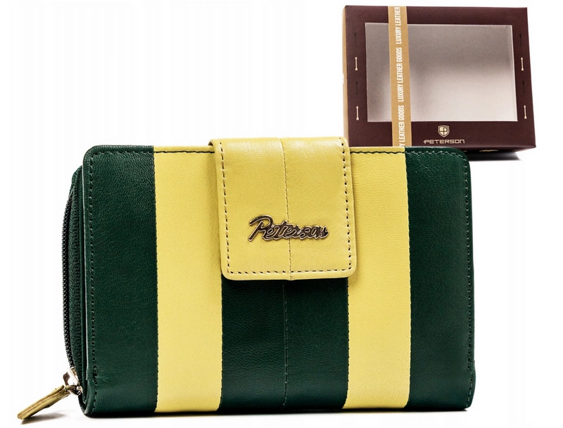 • Oryginalny design | Portfel o ponadczasowej stylistyce w ciekawym kolorze. Model w orientacji poziomej zapinany na trwały i solidny zatrzask. Faktura została ozdobiona pionowymi pasami;