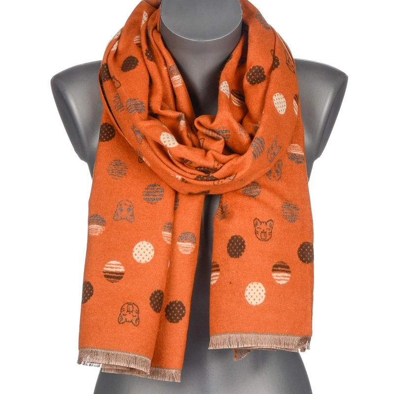 Pomarańczowy Duży Szalik Damski bawełniany ciepły dwustronny koty AX-123