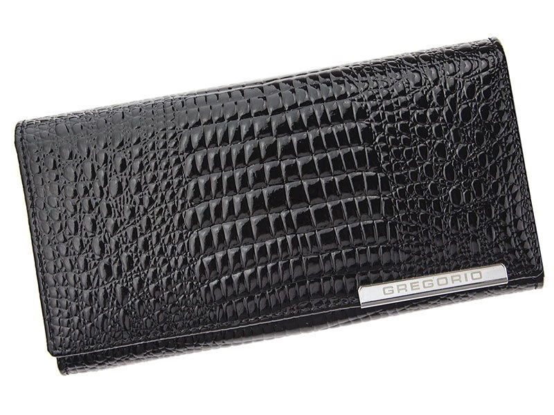Portfel damski marki Gregorio to połączenie klasycznej elegancji z nowoczesnymi rozwiązaniami. Wykonany z naturalnej skóry, portfel wyróżnia się wzorem typu skóra krokodyla, który nadaje mu luksusowy i niepowtarzalny wygląd. Srebrne okucia dodają mu subtelnego blasku, podkreślając jego elegancki charakter. Wykorzystanie skóry naturalnej zarówno na zewnątrz, jak i wewnątrz portfela zapewnia trwałość i wysoką jakość.