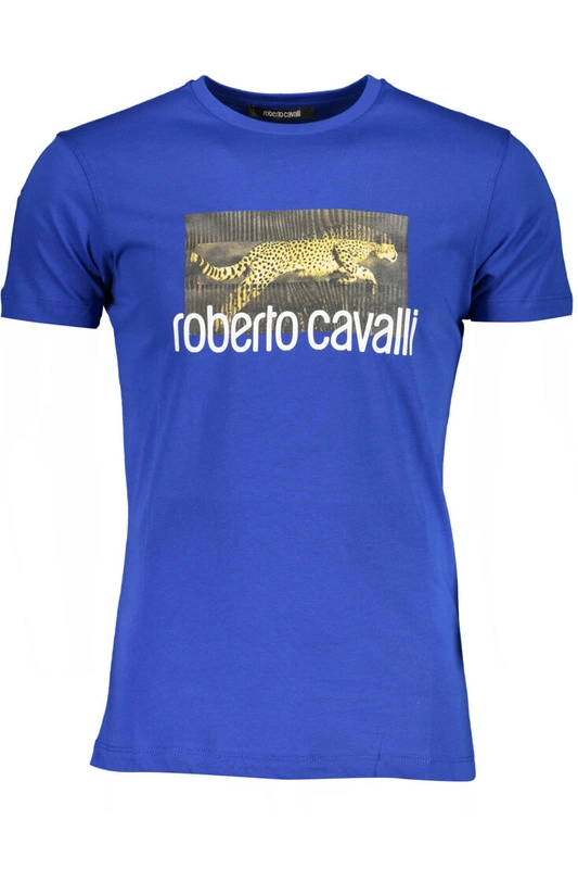 ROBERTO CAVALLI T-SHIRT Z KRÓTKIM RĘKAWEM MĘSKI NIEBIESKI