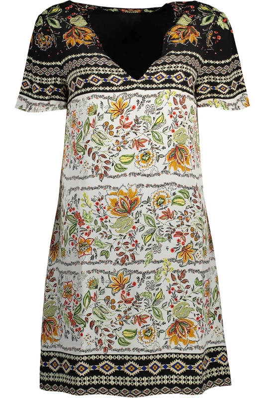 - krótka sukienka, krótkie rękawy, dekolt "v", logo