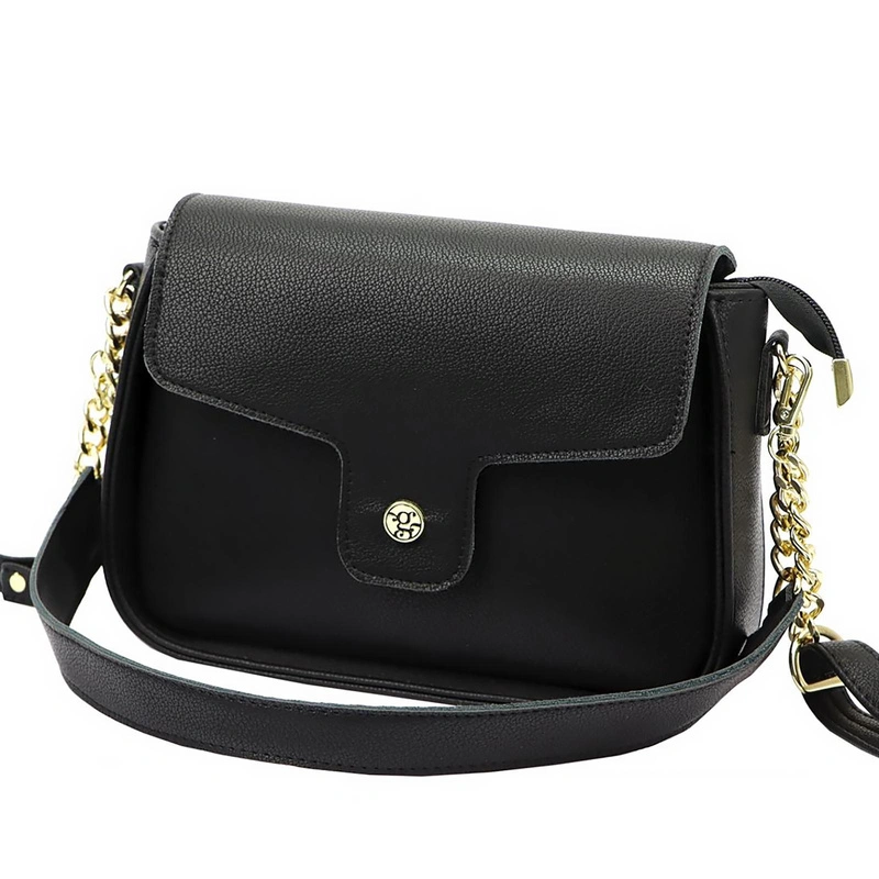 Złote okucia nadają listonoszce wyjątkowego uroku i elegancji. Wykończenie ze skóry ekologicznej dodaje jej luksusowego charakteru, a jednocześnie podkreśla troskę o środowisko.