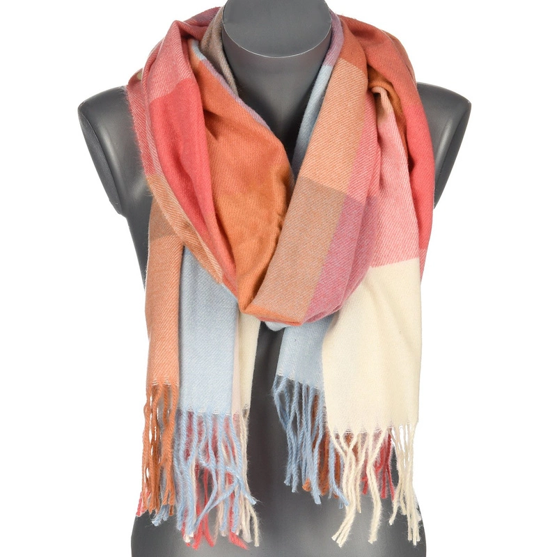 Modny, duży, przyjemny w dotyku szalik damski z modnym wzorem w kratę- idealnie dopełni każdą elegancką i casualową stylizację