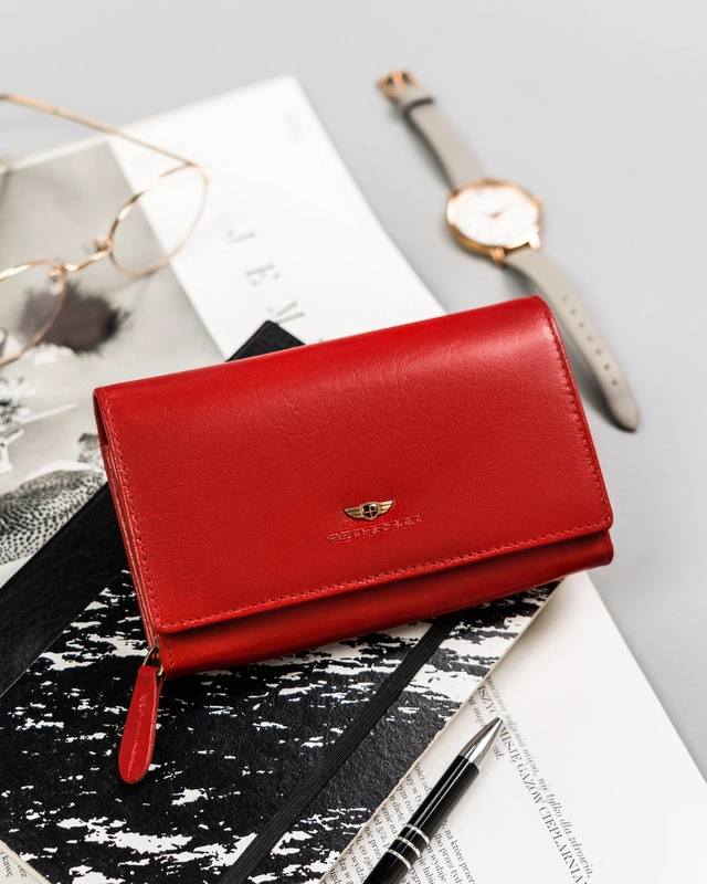 - Zawsze modny fason | Portfel o klasycznej stylistyce w klasycznym czerwonym kolorze. Model w orientacji poziomej, zapinany bezpiecznym i trwałym zatrzaskiem;