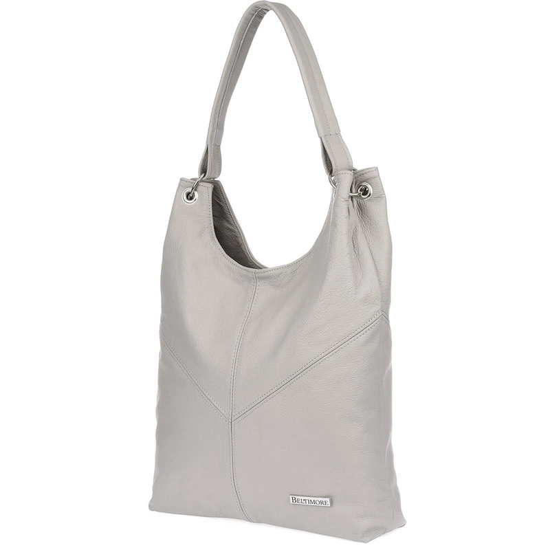 Opinie o Torebka damska skórzana duży worek ze skóry siwa A4 Beltimore 970