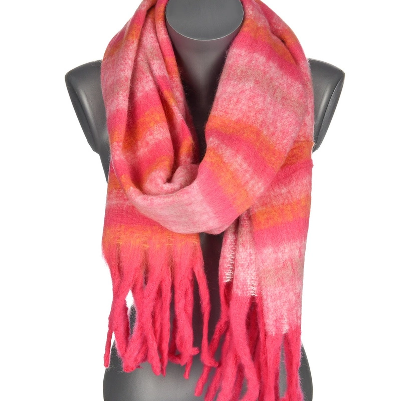 Fuksjowy Jesienny duży Szalik Damski ciepły szal w kratę frędzle szal-77