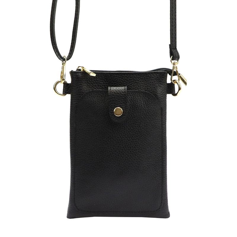 Skórzane damskie etui na telefon z paskiem zasuwane mała listonoszka Luka